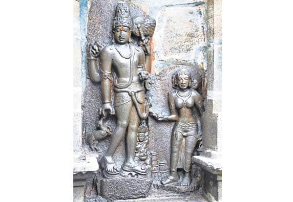 தஞ்சாவூரில் இருந்து மூன்று கி.மீ., தொலைவில் கரந்தை; கல்வெட்டுகளில் இந்த ஊரின் பெயர் கருந்திட்டைக்குடி. இங்குள்ள வசிஷ்டேஸ்வரர் கோவில் கருவறையின் தெற்கு கோட்டத்தில் நம்மை ஈர்க்கிறது இச்சிற்பம்!