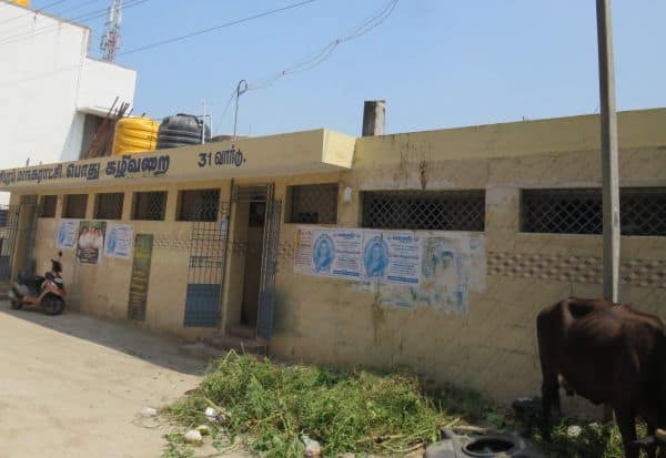 காஞ்சிபுரம் நாகலுாத்துமேடு பகுதியில், மாநகராட்சி பொதுக் கழிப்பறை கட்டடத்தின் மேல்புறத்தில் செடி, கொடிகள் வளர்ந்து இருந்தன.