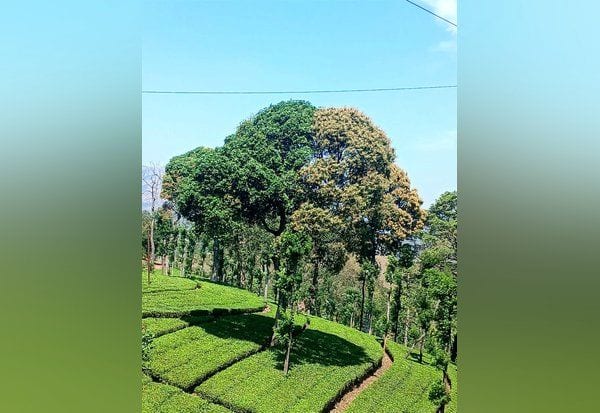 பசுமையான தேயிலை தோட்டத்தின் நடுவே, காணப்படும் இந்த மா மரத்தை உள்ளூர் மக்கள், வெளி மாநில சுற்றுலா பயணிகள் ஆச்சரியத்துடன் ரசித்து செல்கின்றனர்.