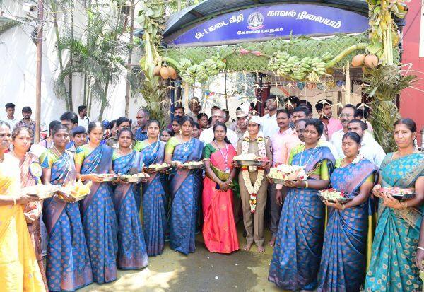 அங்கு தேரில் வீற்றிருக்கும் அம்மனுக்கு சமர்ப்பித்து மரியாதை செய்தனர். அங்கு சிறப்பு பூஜைகள் செய்யப்பட்டன. இன்ஸ்பெக்டர் சசிகலா உள்ளிட்டோருக்கு பிரசாதங்கள் வழங்கப்பட்டன.