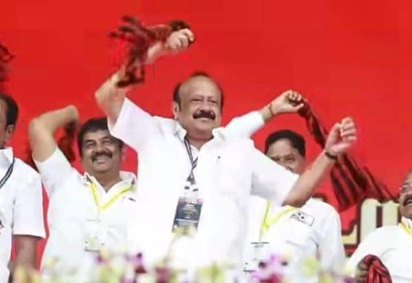 அப்போது, அமைச்சர் பன்னீர்செல்வம் எழுந்து நின்று, கருப்பு சிவப்பு துண்டை தலையை சுற்றி ஆடியபடி, கூட்டத்தில் பங்கேற்ற நிர்வாகிகள், தொண்டர்களிடம் 'வைப்' ஏற்படுத்தினார்.