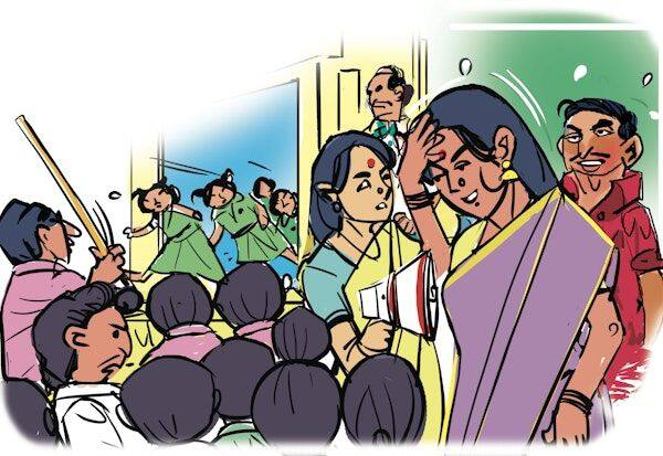 சில ஆசிரியர்கள் நேரடியாக அவர்களிடம் சென்று, 'கழிப்பறைக்குள் பாம்பு வந்து விட்டது... உடனே வாங்க...' என கூப்பிட, 'அச்சச்சோ பாம்பா... நாங்க பம்புன்னு நினைத்தோமே...' என்றபடி, ஊழியர்கள் கம்புடன் பாம்பை விரட்டுவதற்கு ஓட, ஆசிரியர்கள் தலையில் அடித்தபடி நகர்ந்தனர்.