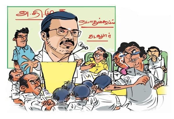 மூத்த நிருபர் ஒருவர், 'இவங்க கட்சி மாதிரி தி.மு.க.,வும் ரெண்டு, மூணா உடையணும்னு ரொம்ப ஆசைப்படுறாரோ...?' என, முணுமுணுத்தவாறு நடந்தார்.