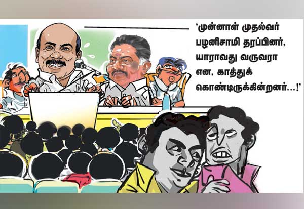 இதில், அவரது ஆதரவாளர் மனோஜ் பாண்டியன் பேசுகையில், 'பழனிசாமி தரப்பினர் கூட்டணிக்கும், தேர்தல் அறிக்கை தயாரிக்கவும் இரு குழுக்களை அமைத்துள்ளனர். கூட்டணி குறித்து பேச வேண்டிய குழு, யாராவது வருவரா என, காத்துக் கொண்டிருக்கிறது.