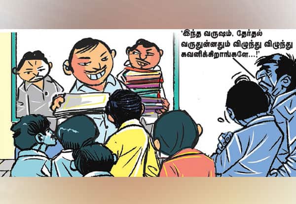 இதை வாங்கிய தி.மு.க., தொண்டர் ஒருவர், 'போன வருஷம் பொங்கலுக்கு யாரும் கண்டுக்கல... இந்த வருஷம், தேர்தல் வருதுன்னதும் விழுந்து விழுந்து கவனிக்கிறாங்களே...' என புலம்ப, சக தொண்டர், 'அடுத்த வருஷம் பொங்கலுக்கு நம்மை மறந்துடுவாங்கப்பா...' என்றபடியே, நடையை கட்டினார்.