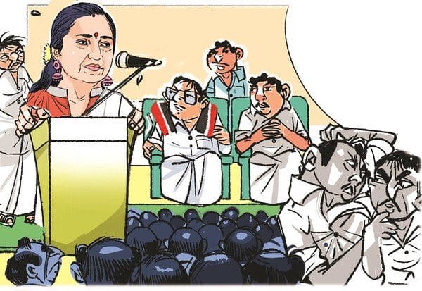 இதை கேட்ட மூத்த தொண்டர் ஒருவர், 'இவங்க அப்பா தங்கபாண்டியன் அமைச்சரா இருந்தாரு... அதனால, இவங்களும் அரசியல்ல பெரிய ஆளாகிட்டாங்க... கவுச்சி வாடை வீசும் கிராமத்துல பொறந்த எல்லாருக்கும் அந்த வாய்ப்பு கிடைச்சிடுமா...' என முணுமுணுக்க, சக தொண்டர்கள் ஆமோதித்தனர்.