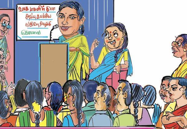 அப்போது, கூட்டத்தில் இருந்து எழுந்த ஒரு குரல், 'அது தியாகிகள் தினம்... அதனால் கொண்டாட மாட்டார்கள்...' என்றதும் அரங்கில் சிரிப்பலை எழுந்தது. மற்றொரு குரலில், 'நீங்க சொல்லி தான் நவ., 19ல் அப்படி ஒரு தினம் இருப்பதே தெரியுதுங்கோ...' என்றதும், அரங்கம் சிரிப்பலையில் அதிர்ந்தது.