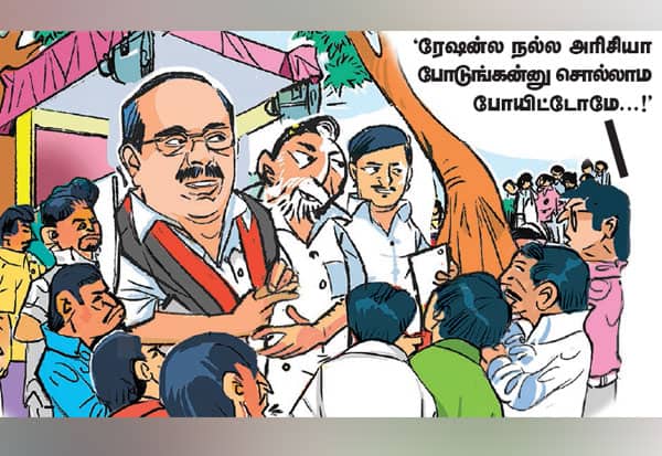 அவர்கள் கிளம்பியதும், தொண்டர் ஒருவர், 'ரேஷன்ல நல்ல அரிசியா போடுங்கன்னு சொல்லாம போயிட்டோமே...' என முணுமுணுக்க, 'அதெல்லாம் ஒருக்காலமும் நடக்காது...' என சக தொண்டர் கூற, அங்கு சிரிப்பலை எழுந்தது.