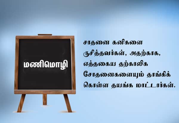 சாதனை கனிகளை ருசித்தவர்கள், அதற்காக, எத்தகைய தற்காலிக சோதனைகளையும் தாங்கிக் கொள்ள தயங்க மாட்டார்கள்.