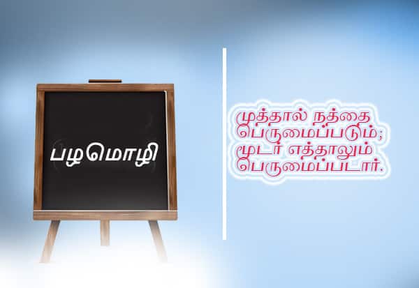 பொருள்: முத்தை சுமக்கும் நத்தைக்கு அதன் வாயிலாக பெருமை கிட்டும். ஆனால், மூடர்கள் எத்தனை சிறந்த விஷயங்கள் கிடைத்தாலும், பெருமைப்பட மாட்டார்கள்.