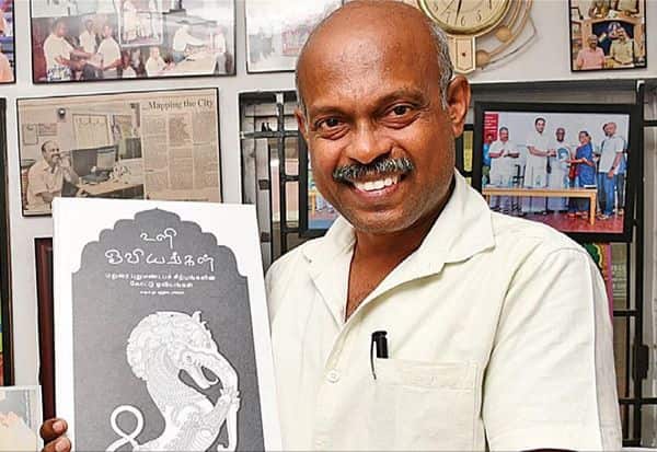 தமிழகம் முழுதும் கோவில்களில் உள்ள சிற்ப தொகுப்புகளை, கோட்டோவியங்களாக்கும் முயற்சியில் இறங்கியுள்ள, மதுரையைச் சேர்ந்த, 53 வயதான ஓவியர் ரத்தின பாஸ்கர்: