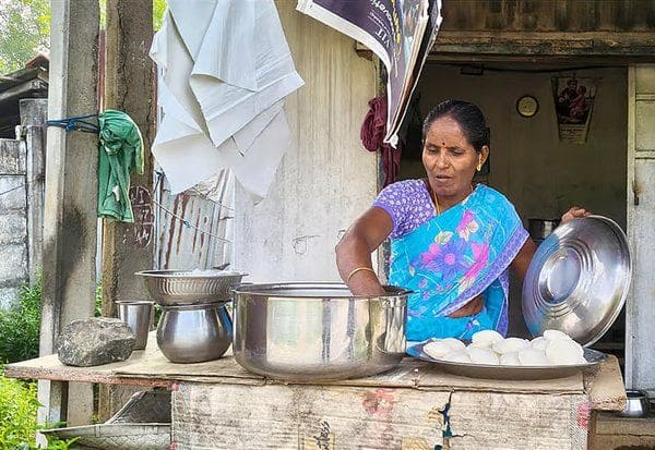 கடந்த 30 ஆண்டுகளாக இட்லி கடை நடத்தி வரும், கள்ளக்குறிச்சி மாவட்டம், விரியூர் கிராமத்தைச் சேர்ந்த, 53 வயதான அமலோற்பவமேரி:
