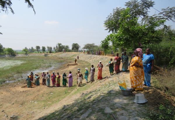 இதையடுத்து ஊரக வளர்ச்சி ஊராட்சி துறை சார்பில், மஹாத்மா காந்தி தேசிய ஊரக வேலை உறுதியளிப்பு திட்டத்தின் கீழ், 100 நாள் வேலை பணியாளர்களின் வாயிலாக குளக்கரை பலப்படுத்தும் பணி நடந்து வருகிறது.