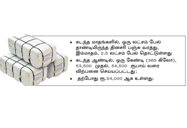கடந்த ஆண்டில், ஒரு கேண்டி (365 கிலோ), 53,500 முதல், 54,500 ரூபாய் வரை விற்பனை செய்யப்பட்டது;