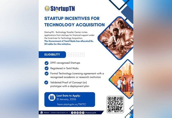 சென்னை:கல்வி நிறுவனங்கள் உருவாக்கியுள்ள புத்தாக்க தொழில்நுட்பங்களை, 'ஸ்டார்ட்அப்' எனப்படும் புத்தொழில் நிறுவனங்கள் வாங்குவதற்கு, தமிழக அரசு, 5 லட்சம் ரூபாய் வரை நிதியுதவி வழங்க உள்ளது. இதற்கு விண்ணப்பிக்க இம்மாதம், 31ம் தேதி வரை அவகாசம் அளிக்கப்பட்டுள்ளது.