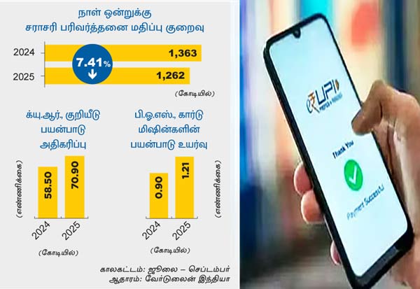 யு.பி.ஐ., பரிவர்த்தனைகள் எண்ணிக்கை கடந்த ஜூலை - செப்டம்பர் காலாண்டில் 34 சதவீதம் அதிகரித்து, 5,933 கோடியாக இருந்தது என, 'வேர்டுலைன் இந்தியா' நிறுவனம் வெளியிட்டுள்ள அறிக்கையில் தெரிவிக்கப்பட்டுள்ளது.
