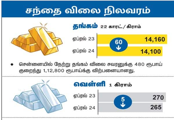 தங்கம் விலை நேற்று சவரனுக்கு 480 ரூபாய் குறைந்து