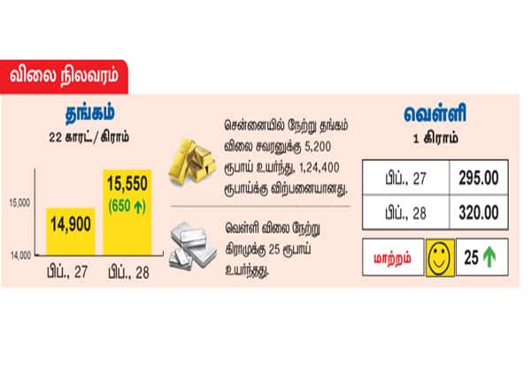 வெள்ளிவிலை நேற்று கிராமுக்கு 25 ரூபாய்உயர்ந்தது