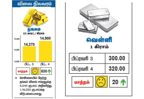 சென்னை: சென்னையில் நேற்று தங்கம் விலை சவரனுக்கு ரூ 5,040 அதகரித்து 1,19,200 ரூபாய்க்கு விற்பனையானது