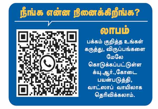 க்யு ஆர்., கோடை பயன்படுத்தி வாட்ஸாப்,வாயிலாக தெரிவிக்கலாம்.