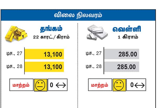 வெள்ளி விலையில் நேற்று மாற்றமில்லை.