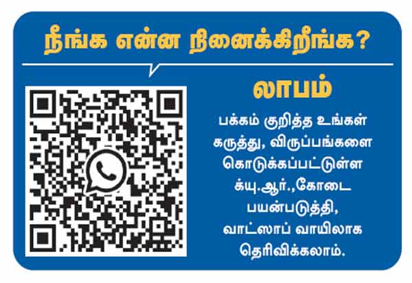 ப க்கம் குறித்த உங்கள் கருத்து, விருப்பங்களை கொடுக்கப்பட்டுள்ள க்யு.ஆர்.,கோடை பயன்படுத்தி, வாட்ஸாப் வாயிலாக தெரிவிக்கலாம்.