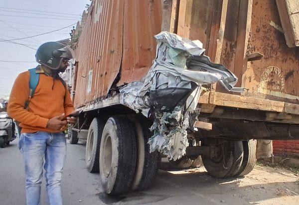 சந்திப்பில் குறுக்கே வந்த கன்டெய்னர் லாரியை கடக்க முயன்றபோது விபத்து ஏற்பட்டதாக சொல்லப்படுகிறது. இருப்பினும், விசாரணைக்கு பின்னரே விபத்துக்கான காரணம் தெரியவரும்.