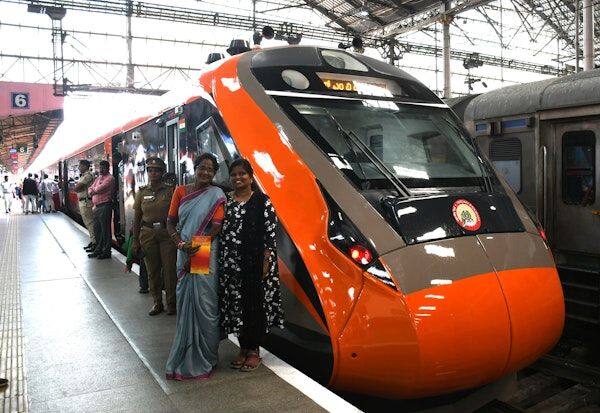 சென்னை சென்ட்ரல் ரயில் நிலையத்தில் நேற்று நடந்த நிகழ்வில், தமிழக கவர்னர் ரவி, மத்திய இணை அமைச்சர் முருகன் ஆகியோர் பங்கேற்று, சென்னை சென்ட்ரல் ரயில் நிலையத்திலிருந்து புதிய வந்தே பாரத் ரயில் சேவையை கொடியசைத்து துவக்கி வைத்தனர்.