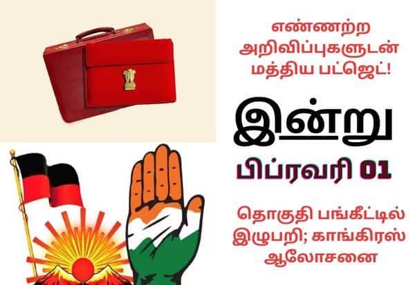 தமிழகம், தேசிய மற்றும் சர்வதேச அளவில் இன்று நடக்கும் முக்கிய நிகழ்வுகள். இன்று (பிப்ரவரி 01) நீங்கள் தெரிந்து கொள்ள வேண்டிய முக்கிய செய்திகள் என்னென்ன?