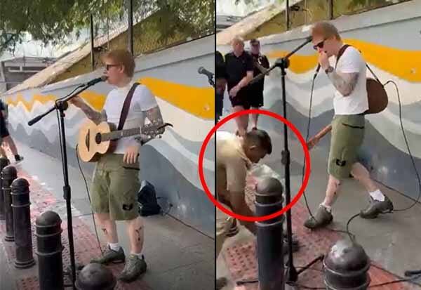 கையில் கிடார், முகம் முழுக்க சிரிப்பு பிளஸ் உற்சாகம் பொங்க Shape of you என்ற தமது பாடலை (இந்த பாடலுக்குத் தான் அவருக்கு கிராமி விருது கிடைத்தது) பாடத் தொடங்கினார். பாடிய அடுத்த சில நொடிகளில் அங்குள்ளவர்கள் அவரை இனம் கண்டு உற்சாக குரல் எழுப்பினர்.