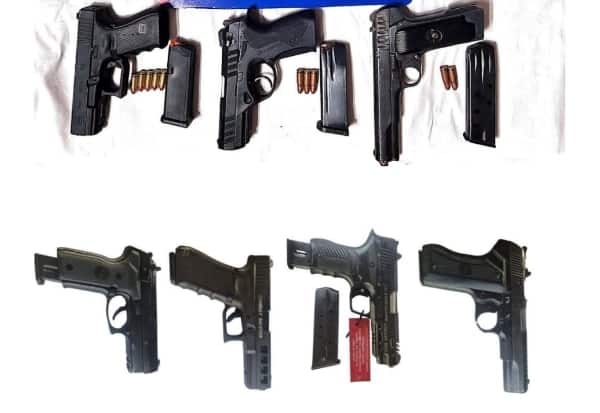 அவர்களிடமிருந்து 2.102 கிலோ ஹெராயின், 7 கைத்துப்பாக்கிகள், 9mm இரண்டு கைத்துப்பாக்கிகள் உட்பட 30 போர் கைத்துப்பாக்கிகள், 10 தோட்டாக்களை பறிமுதல் செய்து போலீசார் தீவிர விசாரணை நடத்தி வருகின்றனர்.