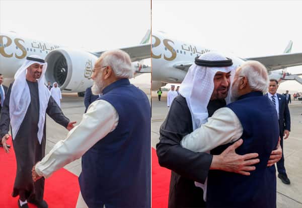 புதுடில்லி: ஐக்கிய அரபு எமிரேட்ஸ் அதிபர் முகமது பின் ஜாயத் அல் நயான், இன்று இந்தியா வந்தார். விமான நிலையம் சென்ற பிரதமர் மோடி, அவரை கட்டியணைத்து வரவேற்றார்.
