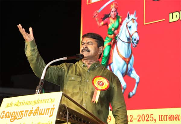 துாத்துக்குடி மாவட்டம், செய்துங்கநல்லுாரில் நேற்று இரவு நடந்த வேலு நாச்சியார் நினைவு பொதுக்கூட்டத்தில் அவர் பேசியதாவது:வேலு நாச்சியார் வழியில் வந்த நம் தமிழ் பெண்கள், 1,000 ரூபாய்க்கு அல்லாடிக் கொண்டிருக்கின்றனர். ஈ.வெ.ராமசாமி வந்த பின்தான் பெண்களுக்கு உரிமையை பெற்று தந்தாரா? நம் தமிழ் பேரரசி வேலு நாச்சியார், ஏழு மொழி கற்று, வாள் வீச்சு, வில்லம்பு, சிலம்பம், குதிரை ஏற்றம், போர் பயிற்சி பெற்று இருந்தார்.