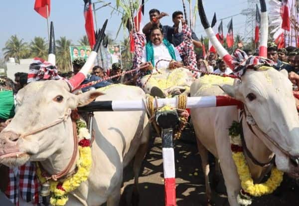 சேலம் மாவட்டம், மேச்சேரி, காரப்பட்டி பள்ளத்தில், அ.தி.மு.க., சார்பில் பொங்கல் விழா நேற்று கொண்டாடப்பட்டது. காலை 10:30 மணிக்கு, பழனிசாமி மாட்டு வண்டியில், நிகழ்ச்சி நடக்கும் இடத்துக்கு வந்தார். பின், தயாராக வைக்கப்பட்டிருந்த பானைகளில், அரிசியை போட்டு பொங்கல் வைக்கும் நிகழ்ச்சியை தொடங்கி வைத்தார்.