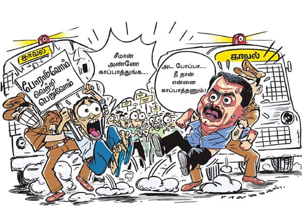 போராட்டத்தில் ஈடுபட்டோரை கைது செய்து விட்டோம் என போலீசார் கூற, அவர்களோடு நானும் கைதாகிறேன் எனக் கூற, சீமானையும் போலீஸ் வாகனத்தில் ஏற்றிச் சென்றனர். வாகனம், சென்னையின் பல்வேறு வீதிகளை சுற்றி, அரை மணி நேரத்திற்கு பின், மீண்டும் வள்ளுவர் கோட்டம் வந்தது. போலீசார் சீமானை இறக்கி விட, ஊரைச் சுற்றி பார்த்த திருப்தியில் சீமானும் அங்கிருந்து புறப்பட்டுச் சென்றார்.
