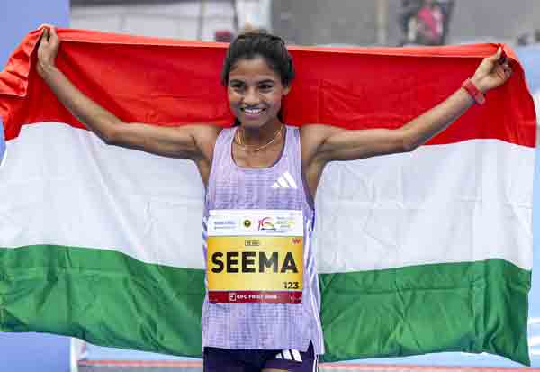இந்திய வீராங்கனைகள் பிரிவில், பந்தய துாரத்தை ஒரு மணி நேரம், 26 நிமிடம், 04 வினாடியில் கடந்த சீமா, புதிய சாதனையுடன் முதலிடம் பிடித்தார். இதற்கு முன் 2017ல் நடந்த இப்போட்டியில் இந்திய வீராங்கனை சூர்யா, இலக்கை ஒரு மணி நேரம், 26 நிமிடம், 53 வினாடியில் கடந்திருந்தார்.