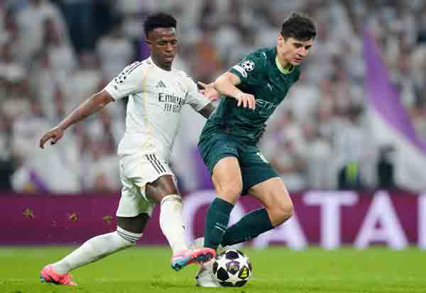 மாட்ரிட்: ஸ்பெயினின் மாட்ரிட் நகரில் நடந்த ஐரோப்பிய சாம்பியன்ஸ் லீக் கிளப் கால்பந்து தொடருக்கான 'ரவுண்டு-16' சுற்றுக்கான முதல் போட்டியில் ரியல் மாட்ரிட் (ஸ்பெயின்), மான்செஸ்டர் சிட்டி (இங்கிலாந்து) அணிகள் மோதின. துவக்கத்தில் இருந்து ஆதிக்கம் செலுத்திய ரியல் மாட்ரிட் அணி 3-0 என்ற கோல் கணக்கில் வெற்றி பெற்றது.