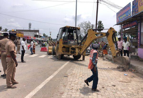 வியாபாரிகள் ஆக்கிரமிப்புகளை அகற்ற முன்வரவில்லை. இதனால் நேற்று போலீஸ் பாதுகாப்புடன் நெடுஞ்சாலைத்துறையினர் பொக்லைன் இயந்திரம்வாயிலாக கால்வாய் மீது அமைக்கப்பட்டு இருந்த ஆக்கிரமிப்புகளைஅகற்றினர்.