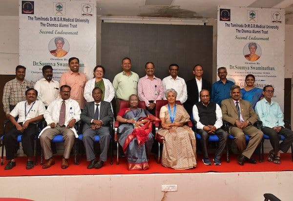 'சுகாதாரமும் ஊட்டச்சத்தும்' என்ற தலைப்பில் நடந்த, இரண்டாவது தொடர் மருத்துவ கல்வி நிகழ்ச்சியில், இடமிருந்து வலம்: அமர்ந்திருப்போர்: செம்கோ அறக்கட்டளை உறுப்பினர் டாக்டர் மோகன்குமார், மருத்துவமனை கண்காணிப்பாளர் டாக்டர் பாஸ்கர், செம்கோ முன்னாள் மாணவர்கள் சங்க தலைவர் டாக்டர் மனோகரன், கல்லுாரி முதல்வர் டாக்டர் ராஜஸ்ரீ, சிறப்பு விருந்தினர், முன்னாள் உலக சுகாதார நிறுவன விஞ்ஞானி டாக்டர் சவுமியா சுவாமிநாதன், அறக்கட்டளை தலைவர் டாக்டர் சுரேஷ், செயலர் டாக்டர் பன்னீர்செல்வம், முன்னாள் தலைவர் டாக்டர் சேகர்.
