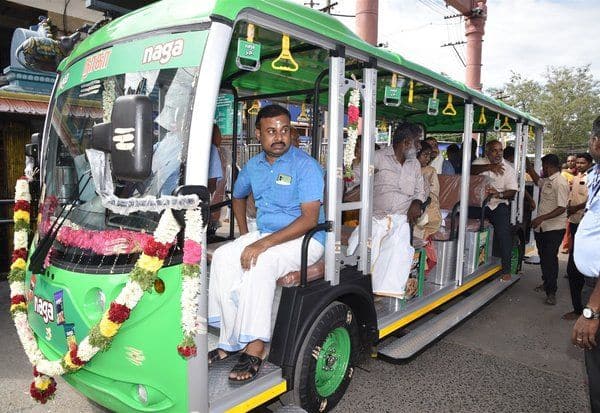 இந்நிலையில் திண்டுக்கல் நாகா லிமிடெட் நிறுவனம் சார்பில் குழும தலைவர் கமலக்கண்ணன் 23 பேர் அமரக்கூடிய எலக்ட்ரிக் பஸ்சை கோயில் இணைக்கமிஷனர் மாரிமுத்துவிடம் ஒப்படைத்தார்.