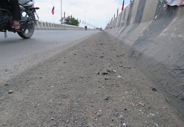 உயர்மட்ட பாலத்தில் மண் குவியல் விபத்தில் சிக்கும் வாகன ஓட்டிகள்