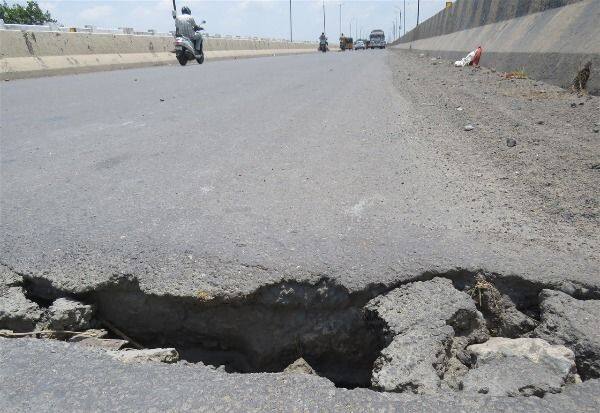 வாகன போக்குவரத்து அதிகம் உள்ள இப்பாலத்தின் மீது போடப்பட்டுள்ள சாலையின் இணைப்பு பகுதியில் விரிசல் ஏற்பட்டுள்ளது.