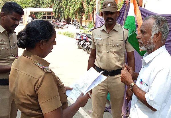 பரமக்குடி சுந்தராஜன்பட்டியை சேர்ந்த தர்மராஜ் தேசியக்கொடியுடன் கலெக்டர் அலுவலகத்தில் மனுஅளிக்க வந்தார். அவரை தடுத்து நிறுத்தி போலீசார் சோதனைக்கு பிறகு அனுமதித்தனர். அவரது மனுவில் ஆயிர வைசிய சபை 2022 தேர்தலில் எனது வேட்புமனு ஏற்கப்பட்ட நிலையில், வாபஸ் பெற்றதாக போலியாக எனது கையெழுத்தை போட்டுள்ளனர். கலெக்டர் விசாரித்து நடவடிக்கை எடுக்க வலியுறுத்தினார்.