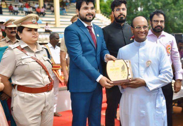 இதற்காக தேனி மாவட்ட விளையாட்டு மைதானத்தில் நடந்த சுதந்திர தின விழாவில் கலெக்டர் ரஞ்ஜீத்சிங், கல்லூரிக்கு 'சிறந்த நற்பணி சேவைக்கான பாராட்டுக் கேடயத்தை' கல்லூரி முதல்வர் ஐசக் பூச்சாங் குளத்திற்கு வழங்கி கவுரவித்தார்.