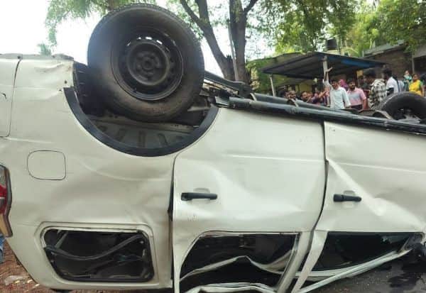 பைக் மீது மோதி கவிழ்ந்த கார் மூன்று பேர் உயிரிழந்த பரிதாபம்
