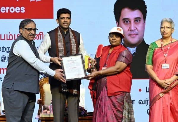 தமிழக தபால் துறை சா ர்பில், 'கிராம அஞ்சல் சேவகர்கள் மாநாடு' சென்னை நந்தம்பாக்கம் வர்த்தக மையத்தில் நேற்று நடந்தது. இதில், தபால் துறை சேவையில் சிறப்பாக பணியாற்றிய, 10 ஊழியர்களுக்கு, மத்திய அமைச்சர் சந்திரசேகர் பெம்மசானி விருதுகள் வழங்கினார்.