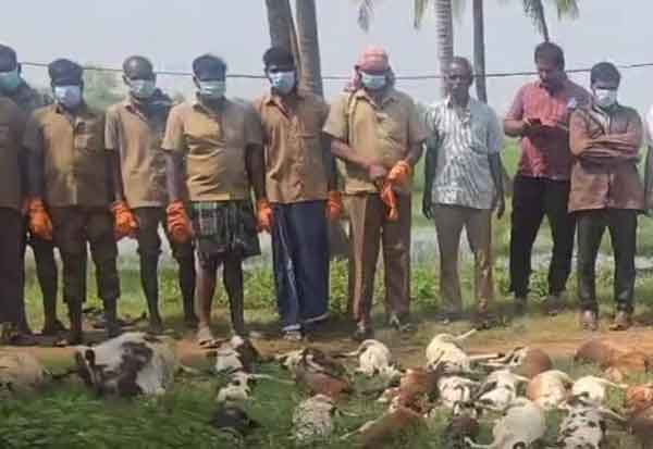 தென்காசி: தென்காசி மாவட்டம் ஆய்க்குடி அருகே கம்பளி கிராமத்தில் திடீர் மழையால் நீரில் மூழ்கி பலியான 90 ஆடுகள் ஒரே இடத்தில் புதைக்கப்பட்டன.