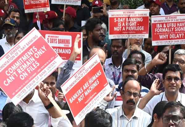நாடு முழுதும் உள்ள வங்கி ஊழியர்கள், பல ஆண்டுகளாக, திங்கள் முதல் வெள்ளி வரை முழு நாளும், சனிக்கிழமை அரை நாளும் பணிபுரிந்தனர். இதன்பின் மாதத்தில், 2வது, 4வது சனிக்கிழமைகள் விடுமுறையாகவும், மற்ற இரண்டு சனிக்கிழமைகள் முழு வேலை நாளாகவும் மாற்றப்பட்டன.