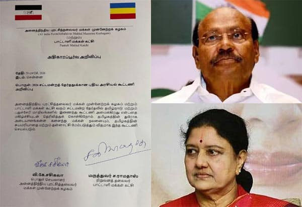 சட்டசபை தேர்தலில் கூட்டணி: ராமதாஸ், சசிகலா அறிவிப்பு