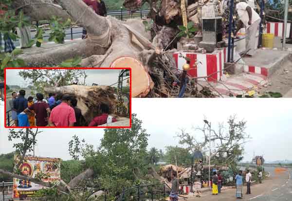 200 ஆண்டுகள் பழமையான கோவில் ஆலமரம் விழுந்தது; பக்தர்கள் வேதனை
